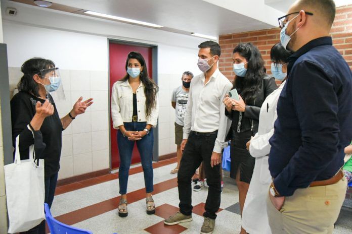 La titular del PAMI, Luana Volnovich, y el candidato a concejal por el Frente de Todos en Lanús, Julián Álvarez, recorrieron la Clínica Estrada en Remedios de Escalada.