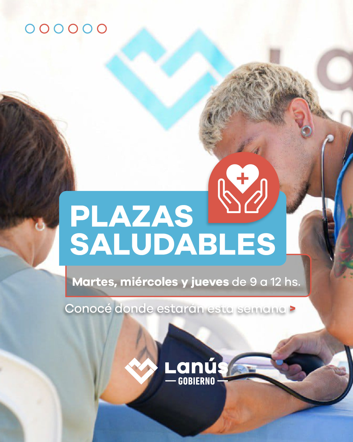 Lanús Gobierno informa que el martes 3, miércoles 4 y jueves 5 de marzo, de 9 a 12, se realizará una nueva edición del programa “Plazas Saludables” en distintos espacios públicos del distrito, con el propósito de promover hábitos saludables, acercar controles médicos gratuitos y fomentar la actividad física con talleres abiertos a toda la comunidad.