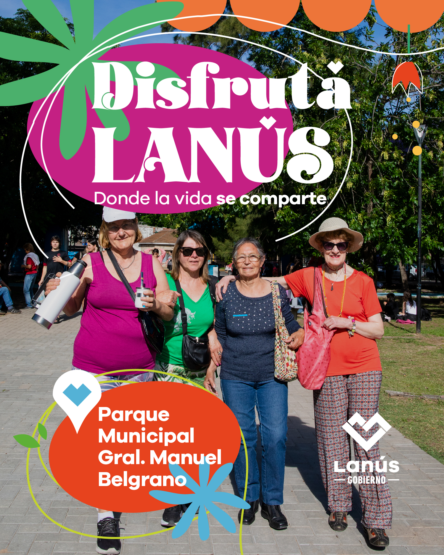 Lanús Gobierno informa que de lunes a domingos, de 8 a 21, las ciudadanas y los ciudadanos pueden acercarse al Parque Municipal General Belgrano, ubicado en la avenida Donato Álvarez N° 4468 de Monte Chingolo, para participar de las distintas iniciativas deportivas y recreativas que se hicieron especialmente para la ocasión, en el marco del programa “Disfrutá Lanús”, con la finalidad de que puedan divertirse de forma gratuita en plena temporada estival.