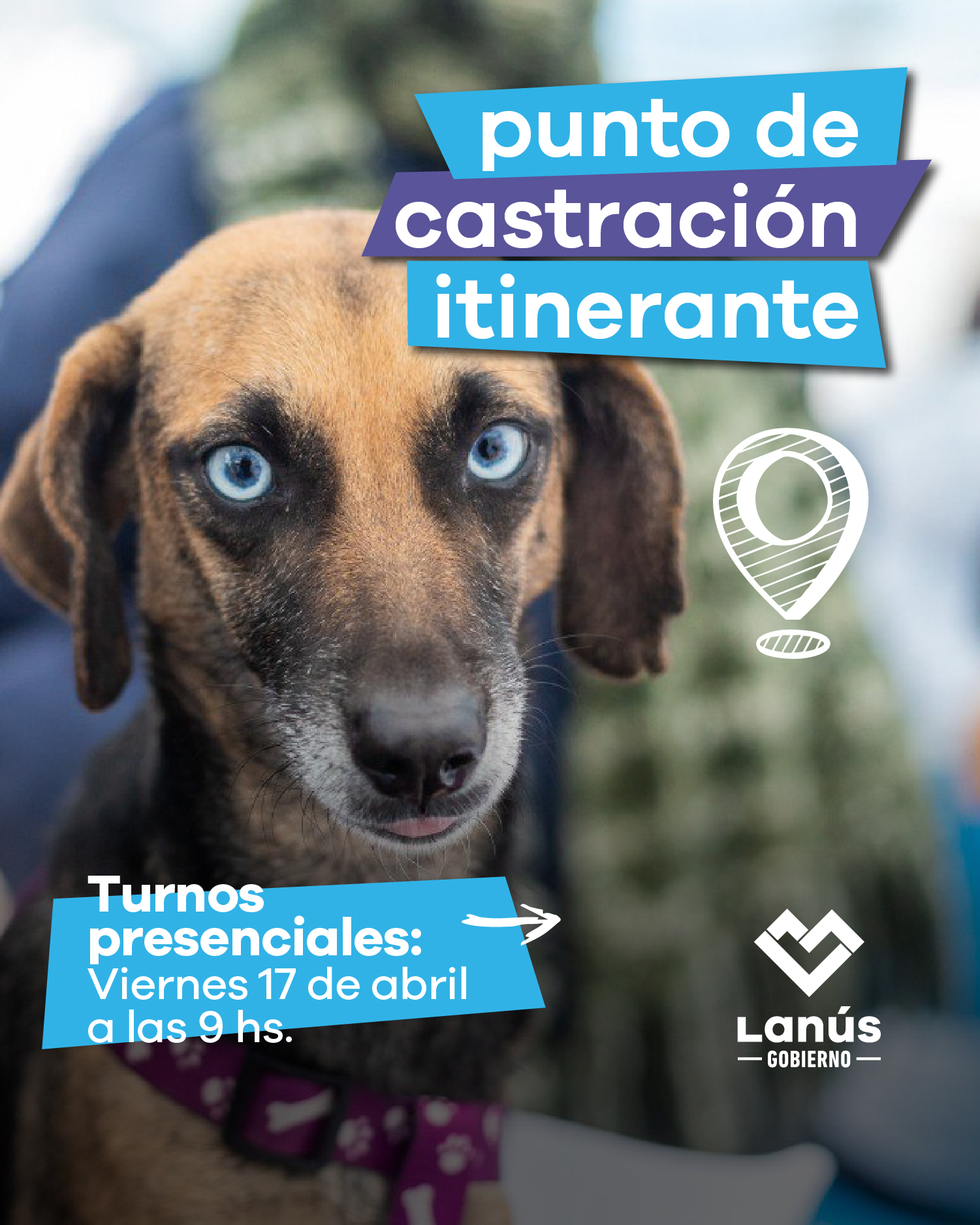 Lanús Gobierno informa que este viernes 17 de abril, desde las 9 y hasta agotar cupos, se brindarán nuevos turnos presenciales para que los vecinos y las vecinas accedan al servicio de castración itinerante gratuito de mascotas en el Club Ata, ubicado en Catamarca N° 2985, en Lanús Oeste.