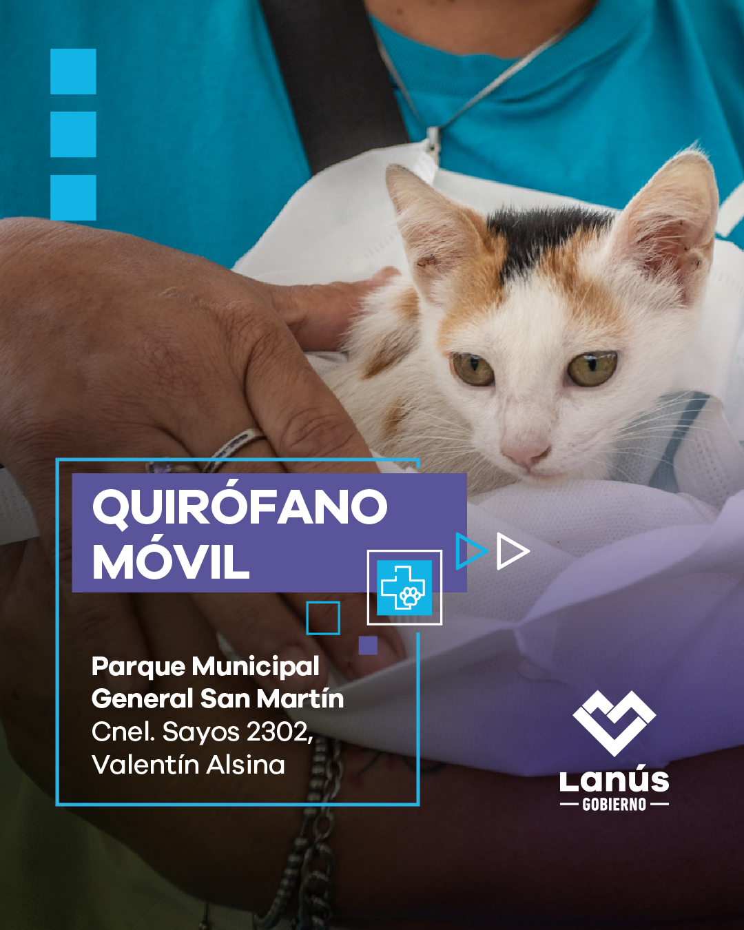 Lanús Gobierno ofrecerá nuevos turnos gratuitos para el Quirófano Móvil el lunes 21 de abril. Las y los vecinos que quieran obtener una cita con la o el profesional veterinario, tendrán que acercarse al Parque Municipal General San Martín, ubicado en Coronel Sayos 2302, Valentín Alsina, a partir de las 9 horas. Los días de castración serán desde el martes 22 al lunes 28 de abril.