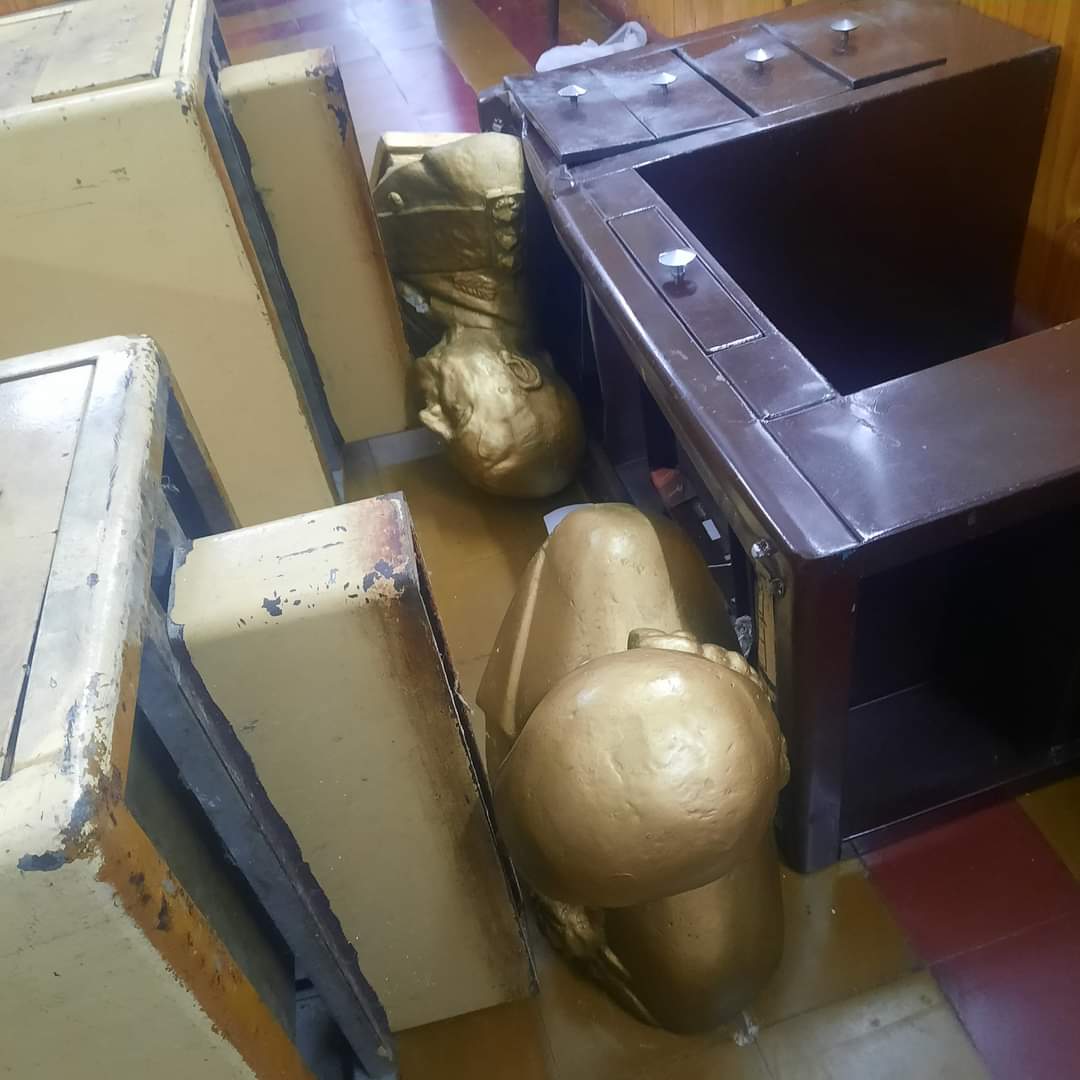 Tirados quedaron los bustos de Evita y Perón que estaban en la sala de reuniones del sindicato de Trabajadores Municipales de Lanús. Oficialismo y oposición unidos en un fuerte repudio.